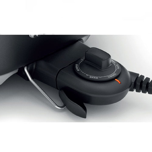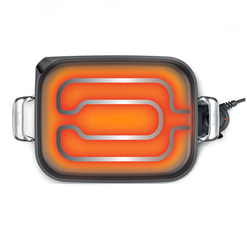 An electric thermostat and an optimally engineered heating element ensures even heat distribution and temperature control across the entire cooking surface. While the thick aluminum construction is for optimal heat retention and efficient transfer to cooking surface.